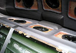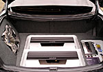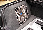 リアトレイには以前フロントに使用していたキッカーRS62が入ってます。ウーハーの音の抜けを良くするように、センターに穴を開けました。 |