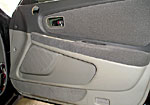フロントスピーカーはキッカーSS65.2です。グリルが大きいため、ポケットをなくして、アウターバッフルを作りました。 |