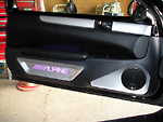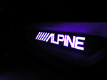 ドアには、アルパインロゴを入れ、パープルのネオン管で光らせました。